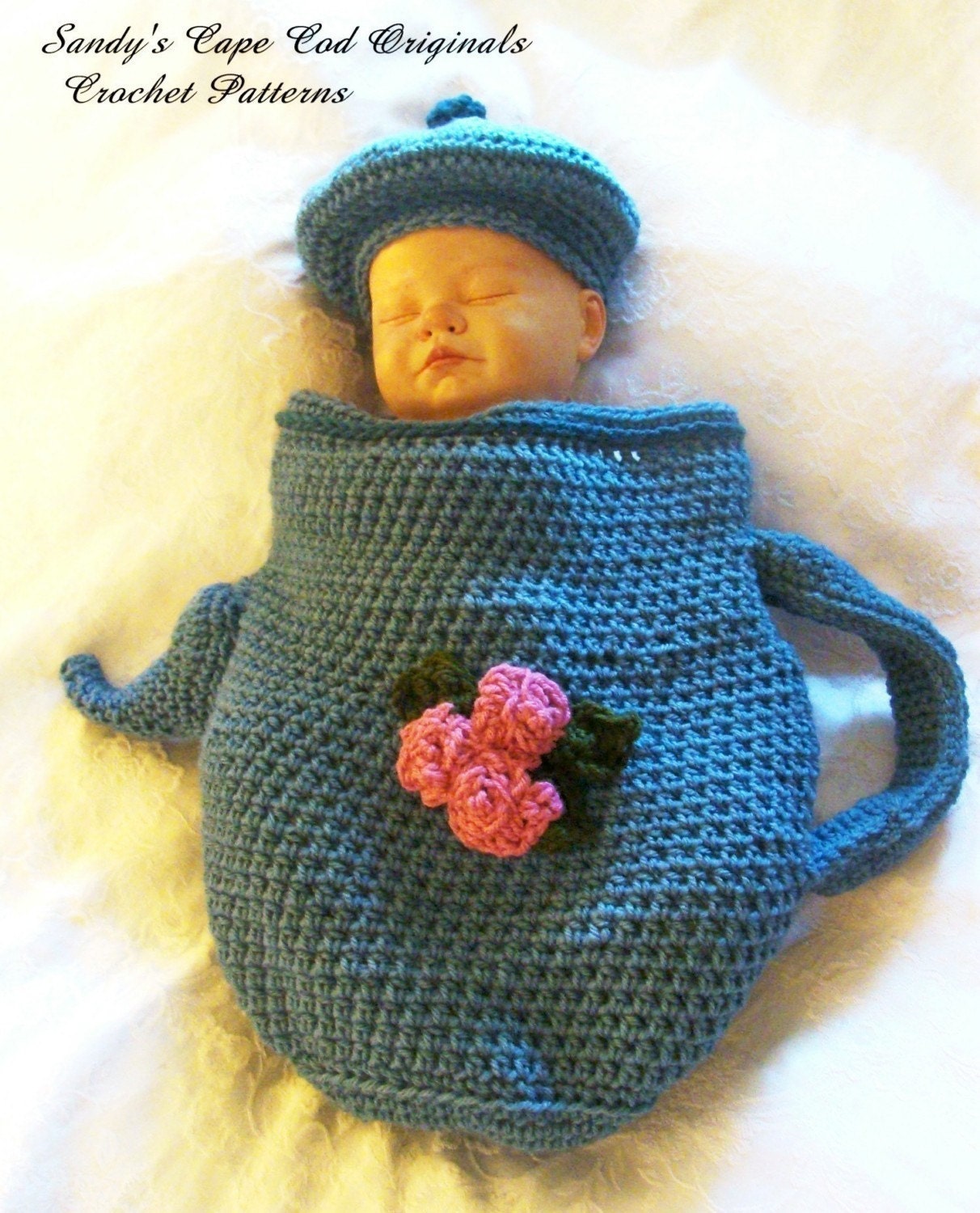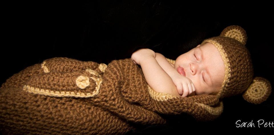 Загорелась я этими шапочками, и решила попробовать хоть что нибудь похожее связать, взяла крючёк и пряжу в руки и через полтора часа шапочка "с ушками" для моей Васюшки была готова.